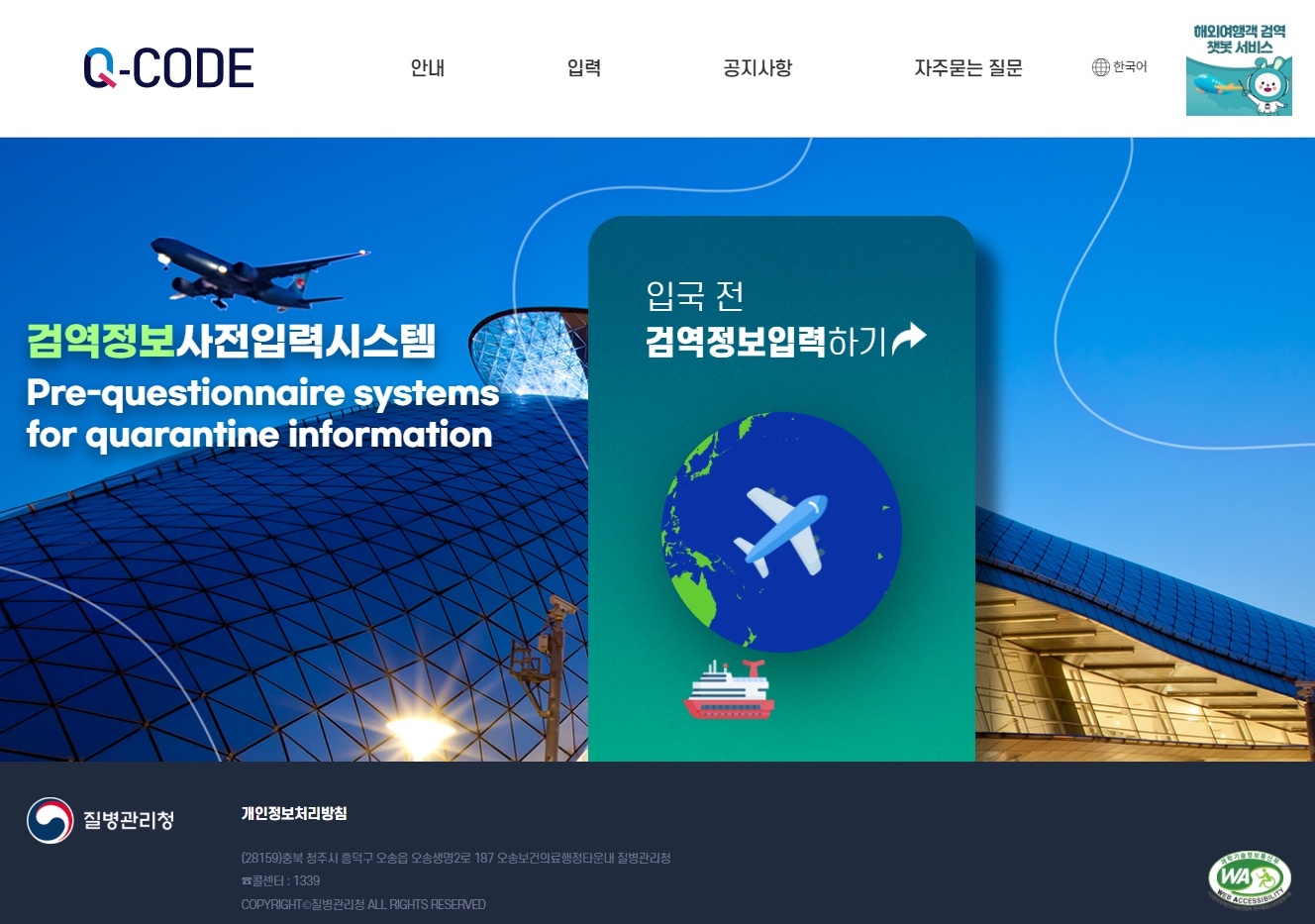 Q-CODE는 해외에서 한국으로 입국할 때, 건강상태질문서를 디지털로 미리 작성하는 시스템입니다.